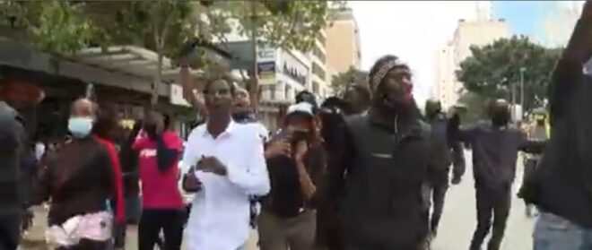 Ωστόσο, μια ομάδα ειρηνικών διαδηλωτών δέχτηκε επίθεση την περασμένη εβδομάδα από μια μεγάλη συμμορία μοτοσικλετιστών «τραμπούκων», όπως είναι γνωστοί στην Κένυα, οπλισμένοι με μαστίγια και ρόπαλα και συνεργαζόμενοι με την αστυνομία.