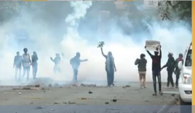 Οι διαδηλωτές συγκρούστηκαν με την αστυνομία, η οποία έριξε δακρυγόνα και κραδασμούς. Οι διαμαρτυρίες σηματοδοτούν έναν χρόνο από την εισβολή στο κοινοβούλιο στο αποκορύφωμα των αντικυβερνητικών διαδηλώσεων .