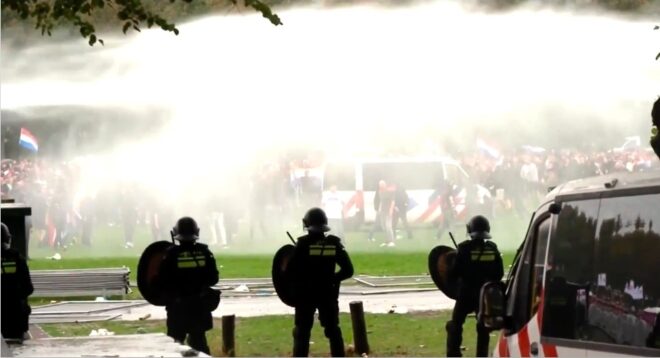 Άμστερνταμ, 20 Σεπτεμβρίου (Reuters) – Η ολλανδική αστυνομία έκανε χρήση δακρυγόνων και αντλιών νερού για να διαλύσει βίαιους διαδηλωτές κατά της μετανάστευσης στη Χάγη το Σάββατο, ανακοίνωσαν οι τοπικές αρχές.