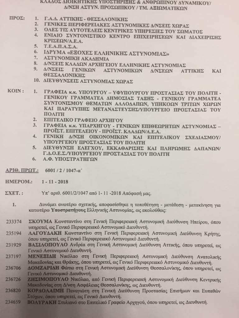 ΜΑΝΤΖΙΩΚΑΣ Αστέριος, από Δ/νση Αστυνομίας Φθιώτιδας στη ΓΕ.Π.Α.Δ. Στερεάς Ελλάδος, ως Γενικός Περιφερειακός Αστυνομικός Διευθυντής.
