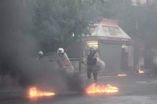 Πεδίο μάχης το Σύνταγμα από άγρια επεισόδια στη συγκέντρωση κατά του νομοσχεδίου για τις διαδηλώσεις. Βροχή οι πέτρες και τα δακρυγόνα. Αποπνικτική η ατμόσφαιρα στην περιοχή.