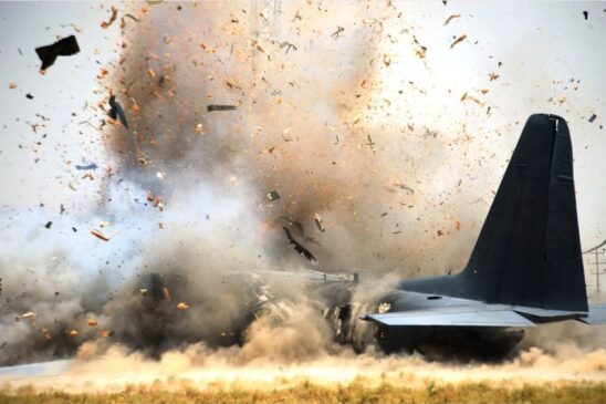 Οι εκρήξεις συγκλόνισαν την περιοχή – υπό ιρανικά πυρά – την ώρα που τρία νέα αεροσκάφη κατέφθαναν στο σημείο για την εκκένωση της τελευταίας στιγμής.