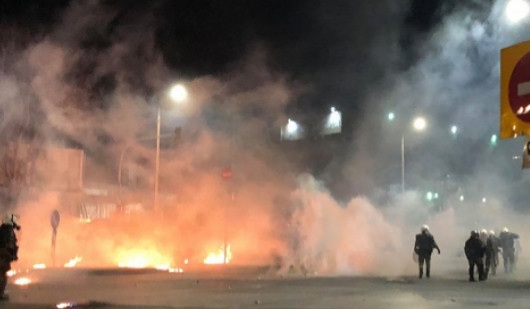 Περί ώρα 23:40, οι συγκεντρωθέντες πραγματοποίησαν πορεία μέσω κεντρικών οδών, κατά τη διάρκεια της οποίας προέβησαν, διαδοχικά, σε ρίψη αντικειμένων εναντίον των αστυνομικών δυνάμεων που βρισκόταν κατάλληλα παρατεταγμένες, οι οποίες τους απώθησαν αποτρέποντας περαιτέρω κλιμάκωση.