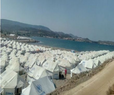 Στην προσωρινή δομή μετεγκατάστασης των λαθρομεταναστών στη Λέσβο , οι Αστυνομικοί σε υπηρεσιακή διάθεση κάνουν σκοπιές σε πλαστική καρέκλα και τέντα με… τσίγκο