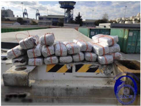 Οι ελεγκτές του Τμήματος Δίωξης Ναρκωτικών της Επιχειρησιακής Διεύθυνσης Σ.Δ.Ο.Ε. Αττικής, την 19-01-2022 στα πλαίσια διϋπηρεσιακής συνεργασίας με το Τμήμα Δίωξης Λαθρεμπορίου του Γ΄ Τελωνείου Πειραιά, κατάσχεσαν 22 ανισοβαρείς συσκευασίες με ποσότητα κοκαΐνης συνολικού βάρους 13 κιλών & 75 γραμμαρίων που εντοπίστηκαν σε ειδική κρύπτη εντός εμπορευματοκιβωτίου, στο λιμάνι Πειραιά, προερχόμενου από τον Ισημερινό έμφορτο με μπανάνες.