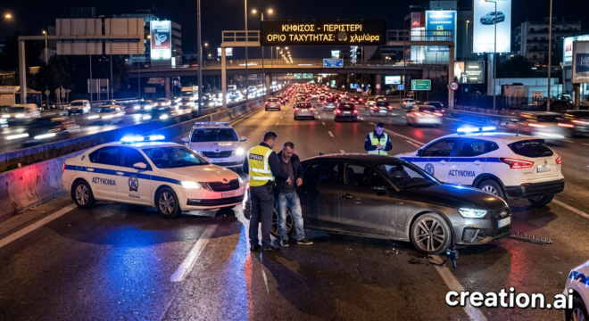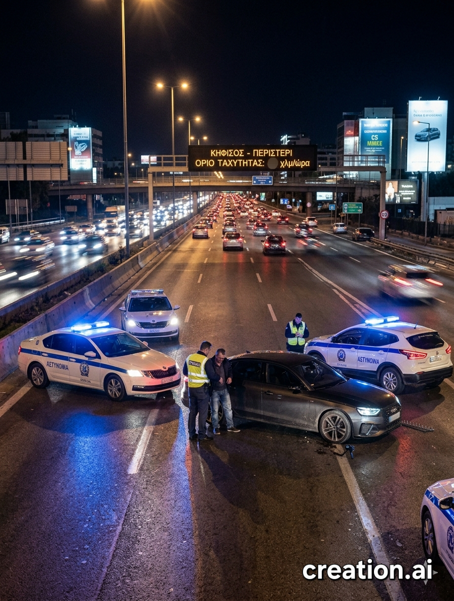 Από αστυνομικούς της Ο.Ε.Π.Τ.Α. της Διεύθυνσης Τροχαίας Αττικής/Γ.Α.Δ.Α. συνελήφθη 46χρονος αλλοδαπός, ο οποίος εντοπίστηκε μεταμεσονύχτιες ώρες σήμερα (18-4-2026) επί της Λεωφ. Κηφισού, να κινείται με ταχύτητα άνω των 200 χλμ/ώρα υπερβαίνοντας το ανώτατο επιτρεπόμενο όριο ταχύτητας κατά 120 χλμ/ώρα και ενεργώντας παράλληλα επικίνδυνους ελιγμούς.