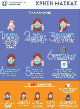 Τέλος, τονίζεται ότι για όλους τους τύπους μασκών θα πρέπει να τηρούνται οι οδηγίες για τη σωστή εφαρμογή τους, έτσι ώστε να μην αφήνουν κατά το δυνατόν κενά μεταξύ προσώπου και μάσκας.