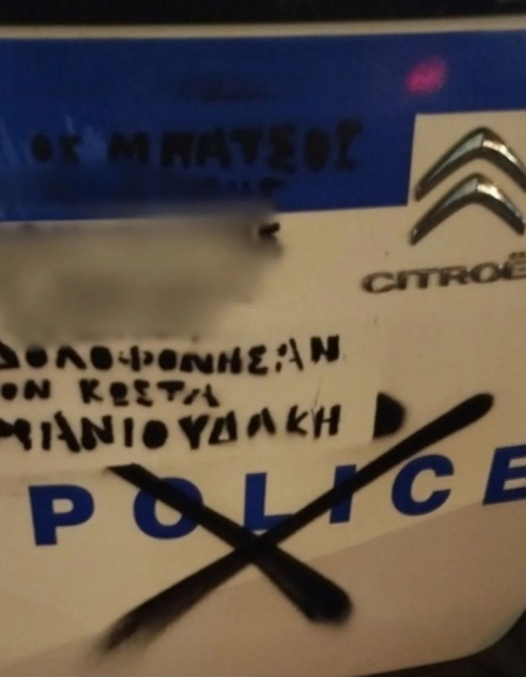 Γέμισαν συνθήματα τα περιπολικά έξω από το Αστυνομικό Μέγαρο Χανίων…(φωτο.)