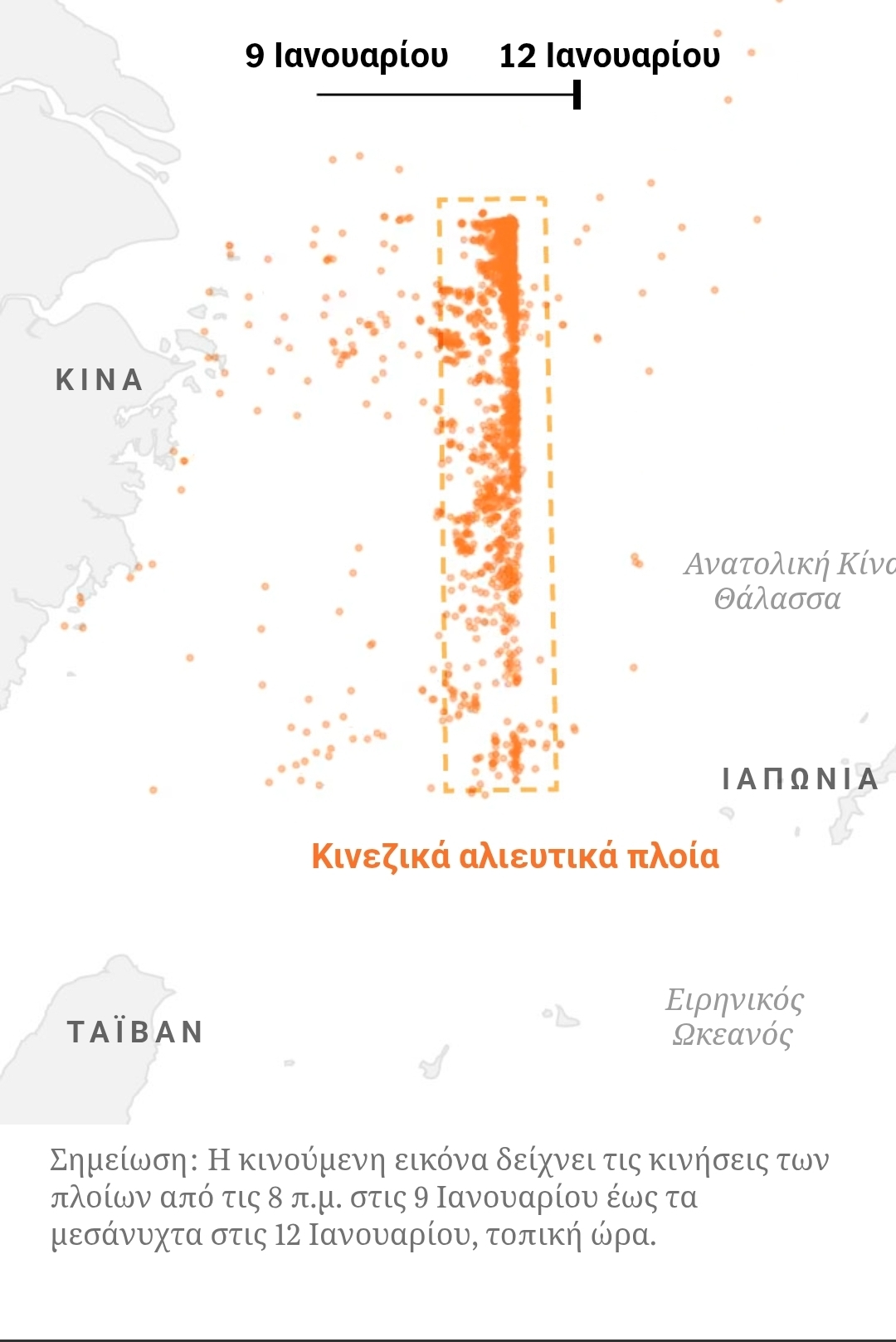 Εικόνα αρχείου Uniformnews Newsroom Από τους Κρις Μπάκλεϊ , Άγκνες Τσανγκ καιΈιμι Τσανγκ Τσιέν Ενημερώθηκε στις 10:30 μ.μ. ET από τους New York Times Video Σημείωση: Η κινούμενη εικόνα δείχνει τις κινήσεις των πλοίων από τις 8 π.μ. στις 9 Ιανουαρίου έως τα μεσάνυχτα στις 12 Ιανουαρίου, τοπική ώρα. Η Κίνα κινητοποίησε αθόρυβα χιλιάδες αλιευτικά σκάφη δύο φορές τις τελευταίες εβδομάδες για να σχηματίσει τεράστια πλωτά φράγματα μήκους τουλάχιστον 200 μιλίων, δείχνοντας ένα νέο επίπεδο συντονισμού που θα μπορούσε να δώσει στο Πεκίνο περισσότερους τρόπους για να επιβάλει τον έλεγχο…