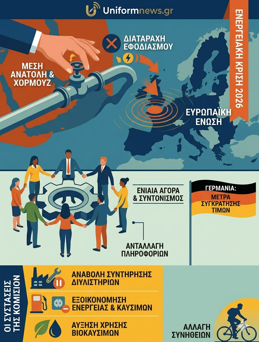 Εικόνα αρχείου creation.ai. Uniformnews Newsroom. Η είδηση για το κλείσιμο των Στενών του Χορμούζ δεν ήταν απλώς ένας γεωπολιτικός κραδασμός· ήταν το σύνθημα για μια νέα φάση ενεργειακής εγρήγορσης στην Ευρωπαϊκή Ένωση. Καθώς η Μέση Ανατολή φλέγεται, η Γηραιά Ήπειρος καλείται να αποδείξει ότι τα μαθήματα από την κρίση του 2022 έγιναν βίωμα και στρατηγική. Το Δόγμα της “Συντονισμένης Οικονομίας” Η ανακοίνωση της Κομισιόν είναι σαφής: δεν υπάρχουν περιθώρια για μονομερείς κινήσεις. Η σύσταση για αναβολή συντηρήσεων στα διυλιστήρια και η αύξηση της χρήσης βιοκαυσίμων δείχνουν ότι η…