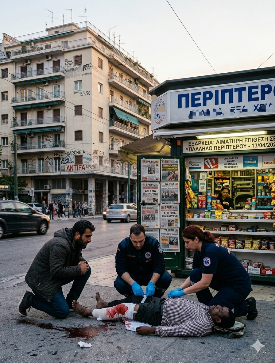 Εξάρχεια: Μαχαιριά για το “Τίποτα” σε υπάλληλο περιπτέρου _ Αστυνομικοί-ήρωες τον κράτησαν στη ζωή με τουρνικέ!